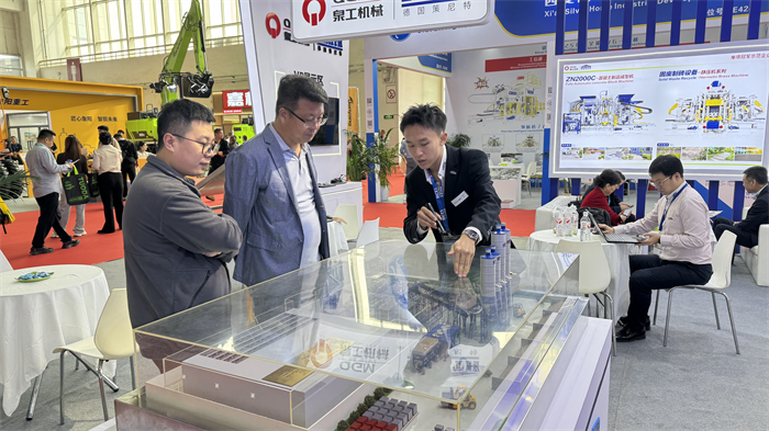 敷地内の技術デモンストレーションエリアには、絶え間なく来場者が集まりました。 3Dモデル解析と実機動作デモにより、原料配合から完成品の硬化までの全プロセスを可視化し、装置のコアメリットである「低エネルギー消費、高い生産能力、高い適応性」をお客様に直接体験していただくことができました。中東からのバイヤーは、「QGM の装置は地元の産業固形廃棄物を処理するだけでなく、高温気候にも適応します。これはまさに私たちのインフラプロジェクトに必要なソリューションです。」と述べました。