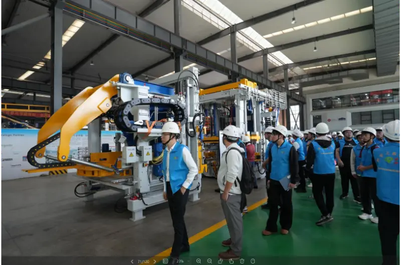 装置製造作業場では、実験室、組立作業場、デバッグ作業場を見学し、原材料の分析から自動ブロック製造装置一式までの全工程を学びました。サンプルコーナーでは、屋内外壁レンガ、屋外舗装レンガ・縁石、水利・治水資材、エコロジー法面保護、重力擁壁など、同社のレンガ製造機械で製造された製品の仕様や用途を展示した。会議室では企業プロモーションビデオが上映されました。